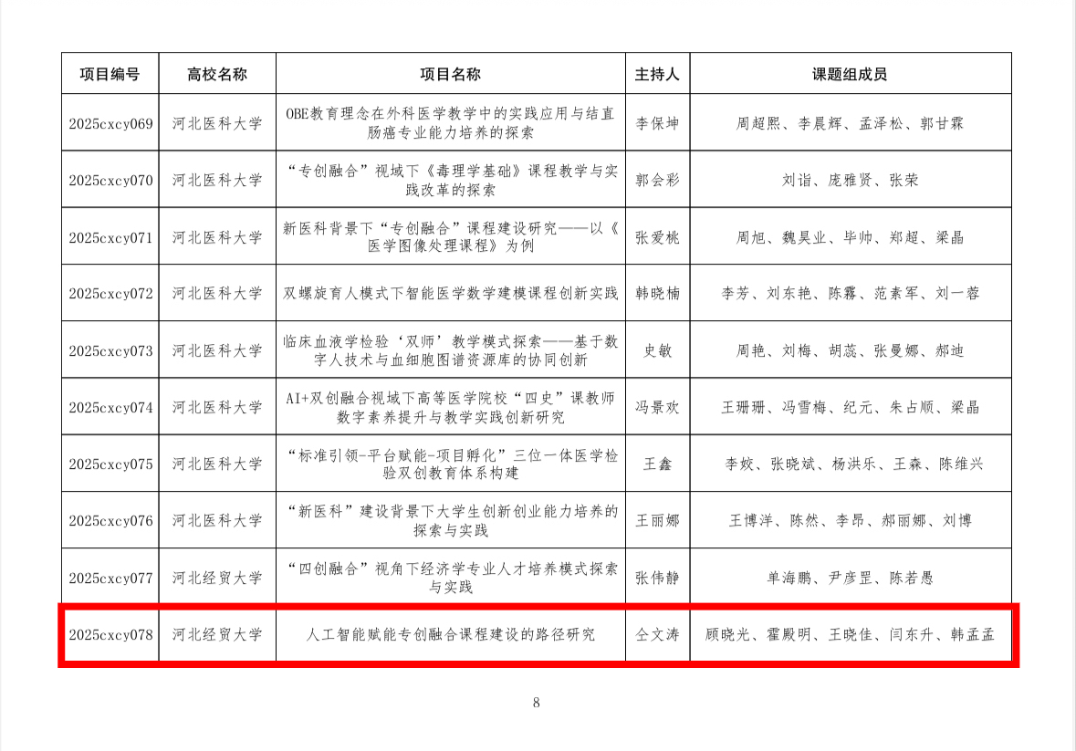 近日,河北省教育厅公布了2025年省级创新创业课程、教改项目立项建设名单,欧美a片