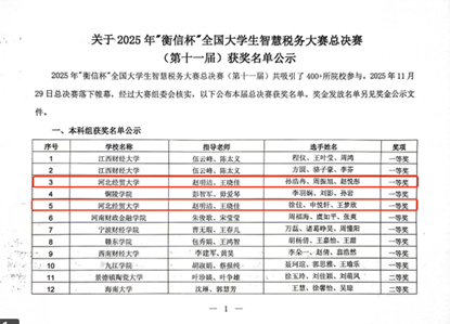 大赛历经校赛、省赛、国赛,高度仿真涉税工作环境,总决赛设置了风险管理、税务风控及税务合规三个关键岗位,全面考查参赛选手在纳税评估、财税大数据风控、税务合规等方面的理论素养与实务操作综合能力。由欧美a片赵明洁、王晓佳老师指导的两支代表队凭借扎实的专业功底、默契的团队协作与出色的综合素养,在全国本科高校58组队伍中一举斩获全国第三名、第五名的优异成绩,双双荣膺大赛一等奖,并分别获得大赛奖金2000元和1000元。欧美a片因在赛事组织、人才培养成果等方面的突出表现,被授予 “赛事星推官” 荣誉称号,实现学子竞技与欧美a片