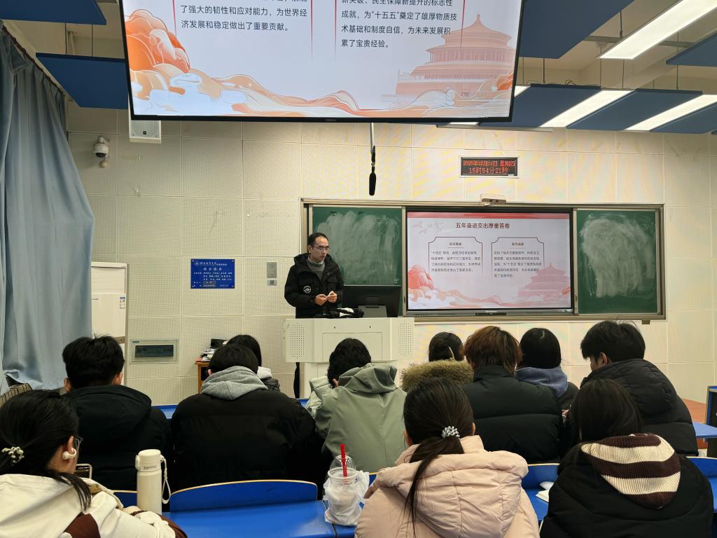 仝文涛从盛会启新程、回望“十四五”、锚定“十五五”、任务施工图、落实动员令五个方面进行了深入讲解。系统梳理了全会召开的时代背景与里程碑意义,回顾了“十四五”时期我国在应对多重挑战中取得的重大成就与宝贵经验,深入解读了“十五五”时期面临的形势、指导思想、六大原则以及推动高质量发展、实现科技自立自强、提升人民生活品质等一系列主要目标与战略任务。