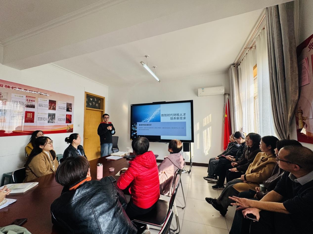 多位教师参与交流,共同探讨人工智能发展背景下如何完善发展税收学相关课程构建。此次活动中,岳文浩老师从现实背景、核心内涵和发展前景三个维度对未来AI赋能税收学课程建设开展汇报。当前形势下,传统教学模式在面对税收政策频繁更新、理论与实践脱节、学生内生动力不足等问题时愈显乏力。同时,数字经济时代对财税人才提出了更高要求,期望其具备“懂技术、通业务、善决策、守底线”的复合能力。AI技术,特别是像DeepSeek这样的大模型,其强大的知识处理、个性化推荐和深度交互能力,为破解这些教学困境提供了关键赋能点。